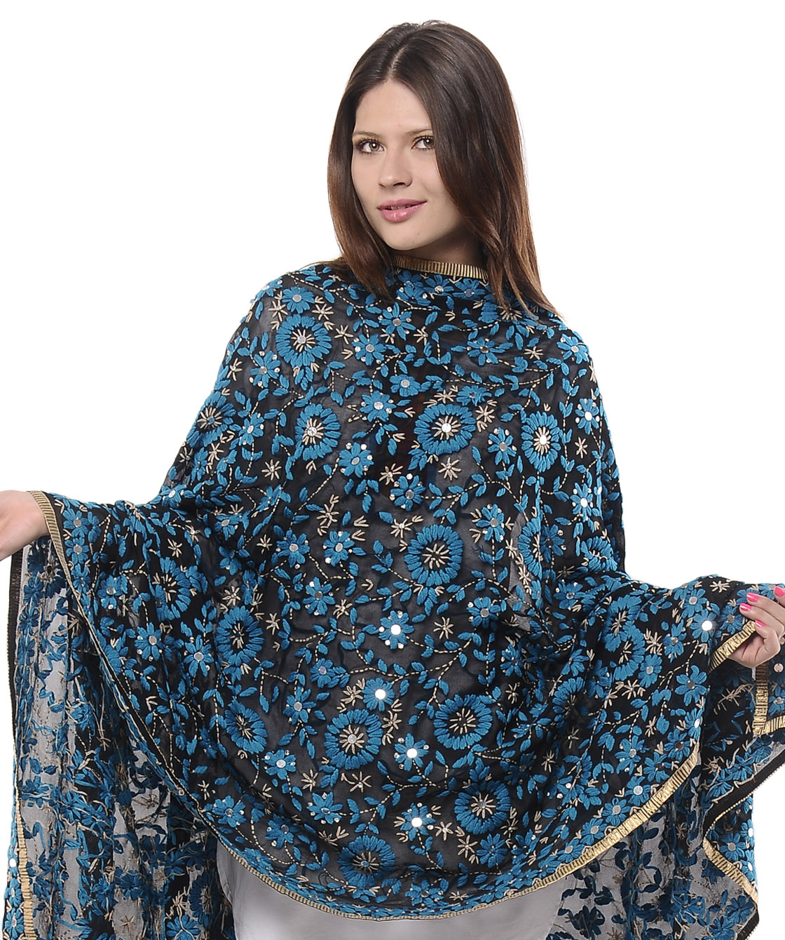 Phulkari is a hand art of Punjab Regions mostly use for fabric and decorate clothes.Phulkari embroidery technique belongs to glorious crafts heritage of India and Pakistan.Phulkari art mean a thread work or kind of embroidery in which usually use flower and Square patterns mostly for Shawls, Head scarfs and Dupatta's. Phulkari is pure domestic art or folk art made in Northern area of Punjab like Chakwal and Hazara.The women's who know Phulkari Embroidery they were selling their products in market and doing small business while sitting home.Phulkari made with cross stitch, darn stitch on the wrong side of coarse cotton, lawn , Silk or chiffon fabric with multi coloured silk thread.Phulkari artist play with colors and create innumerable alluring designs and style by their skillful manipulation.Clothing9 today brought some Handmade Phulkari Dupatta from Indian Market with desire to promote Indian handicrafts.These dopattas are decorated with different thread embroidery which called Phulkari on chiffon fabric.You must adorn these Hand Embroidered Phulkari Dupatta Designs 2013 because of quality, Masterfully crafted and portraying absolute brilliance in the designs and colour.Indian Phulkari Dupatta designer showed a great way to bring back Indian roots and crafts heritage to support Indian art.Here Phulkari Dupatta's enriched with not only thread embroidery but also nourished with mirror art and beads work to make it more unique and masterpieces.Lets Check.....