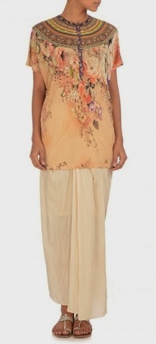Tarun Tahiliani Sufi & Bidri Plates Collection 2014 inspired by the traditional bidri metal crafts. This beautiful collection uses contrasts in bright colors with ecru to give an illusion of sensuous shapes. Graceful silhouettes in elegant fabrics like silk dupioni, Georgette, sheer silk and fine cotton tailored with precision, makes a bold and classy statement with trousers, skirts and kurtas. If sufi collection gives you traditional hint in occasions then Bidri Plates will add a valuable taste of cocktail dresses. Let's have a look on Tarun Tahiliani Occasion-Wear Collection 2014-15.